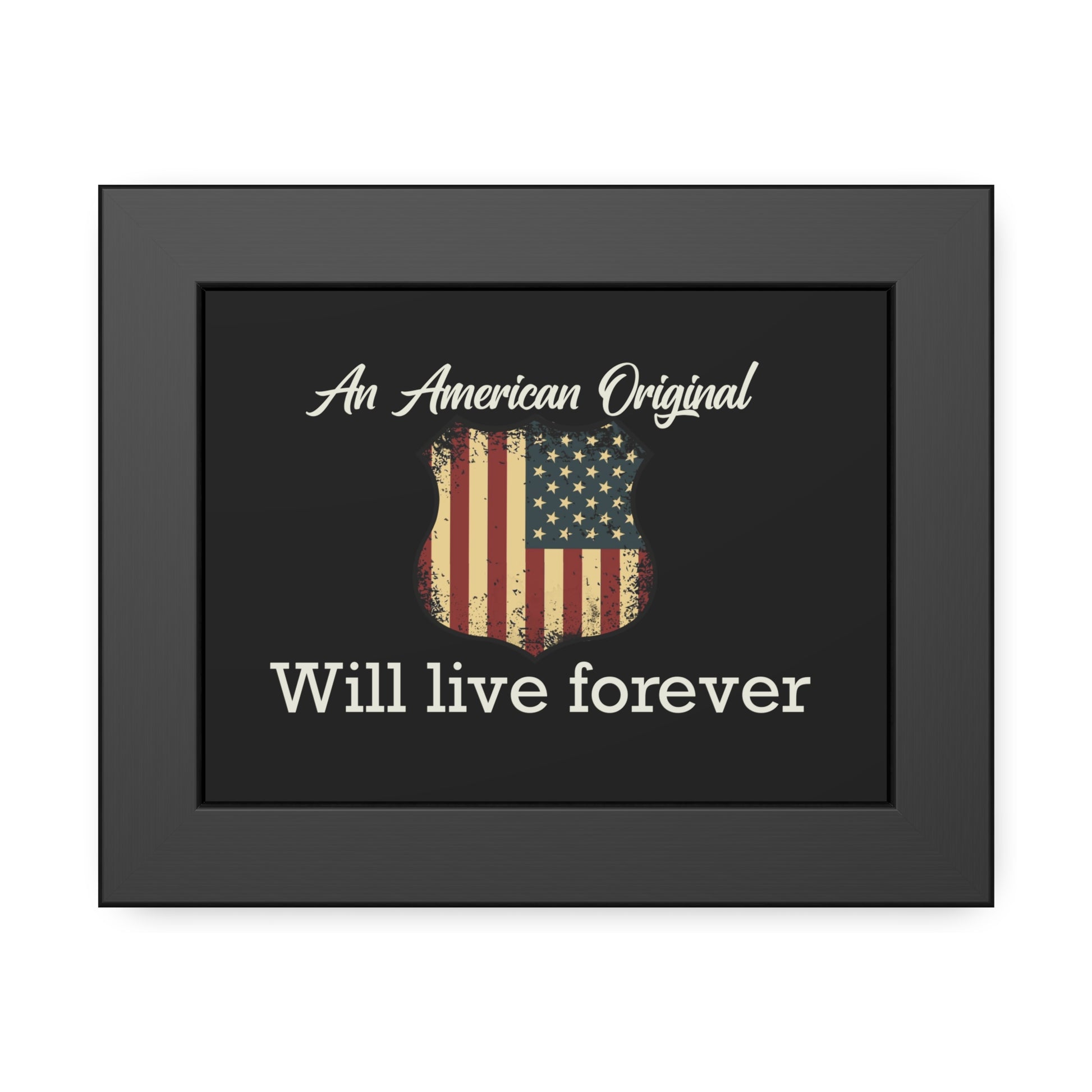 .: Materials: 100% pinewood frame and shatter-proof plexiglass .: 10 sizes to choose from .: Horizontal and vertical options available .: Paper thickness: 310 gsm for fine art, 260 gsm for semi-glossy paper .: Two paper options - fine art and semi-gloss .: Matte black color frame finish and brown paper backing .: Pre-installed hanging hardware and rubber bumpers .: Assembled in the USA from globally sourced parts